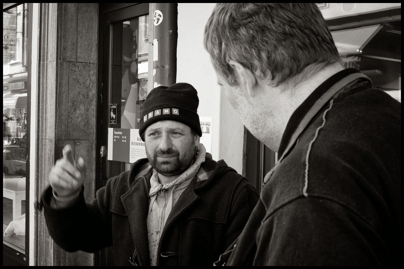 Gheorghe kom till Sverige med en förhoppning om att få tag på ett arbete inom jord- eller skogsbruket. Men hur han än försökte fick han inte tag i något arbete. Gheorghe vill inget hellre än att arbeta och göra rätt för sig. Att han bara kan Rumänska och varken kan läsa eller skriva har satt ordentliga käppar i hjulet för honom och till fann han ingen annan utväg än att sätta sig på gatan och tigga ihop pengar. De flesta pengarna som Gheorghe tigger ihop skickar han hem till sin fru och sina barn i Pauleasca. De övriga pengarna sparar han ihop till returbiljetten. Härbärget som han tidigare bodde på stängde för ett par veckor sedan och nu bor han tillsammans med några andra tiggare i en park.